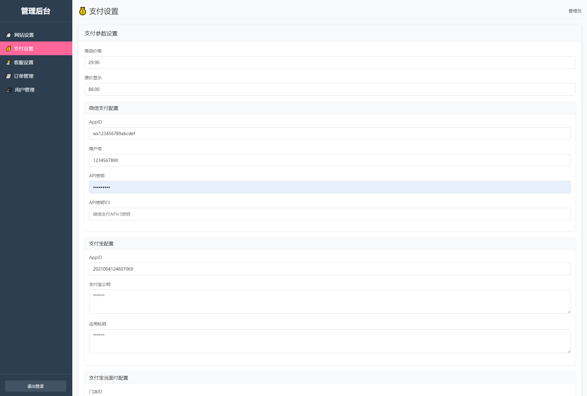 后台管理: